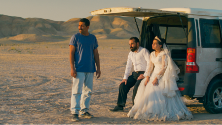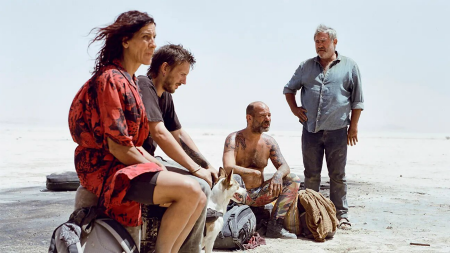 It is a survival story about several unlikely traveling companions making their way through a terrible stretch of the Sahara Desert. It carries echoes of countless earlier films, from the arid landscapes of a classic Western to the post-apocalyptic setting of a Mad Max. But nothing about about this film feels derivative. It's an astonishing and thrilling piece of cinema. It begins somewhere in southern Morocco, where hundreds of nomadic revelers have gathered for a rave. It seems that a worldwide war or something like it has broken out, though the specifics are left vague. Whatever's going on, this astonishing opening plays like a party at the end of the world. It sweeps you up in the intense physicality of the dancing and the propulsive beat of the music, composed by the experimental electronic musician Kangding Ray.